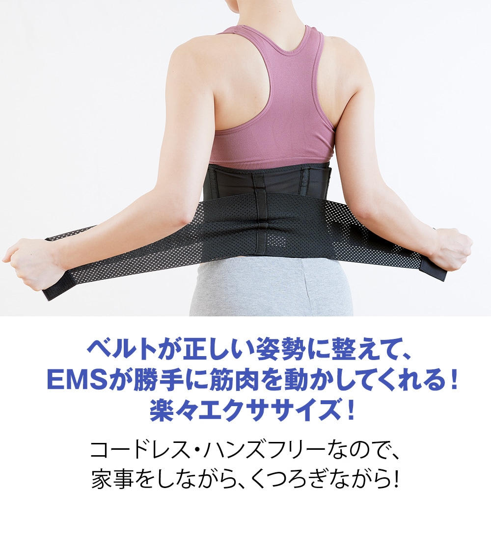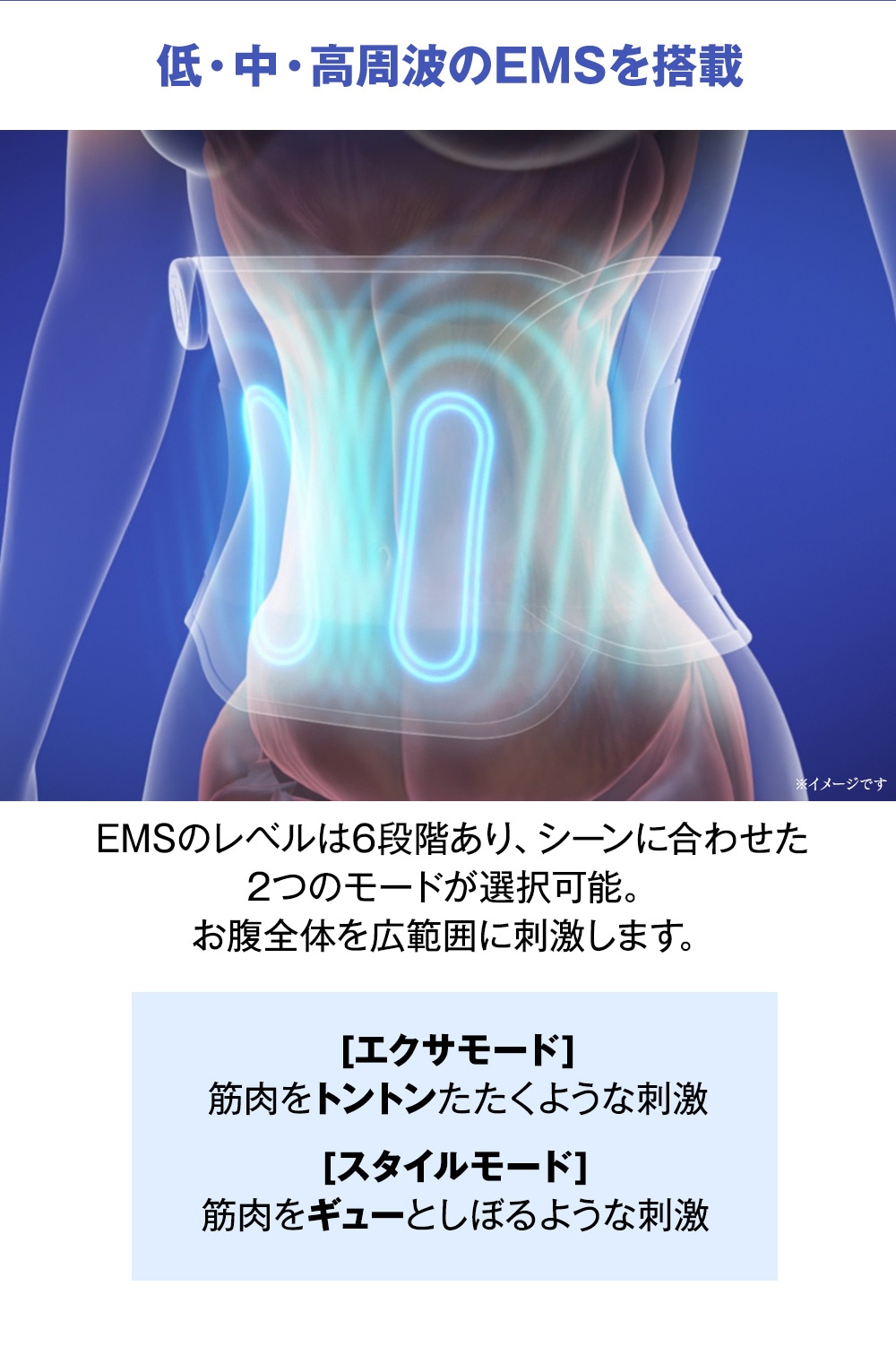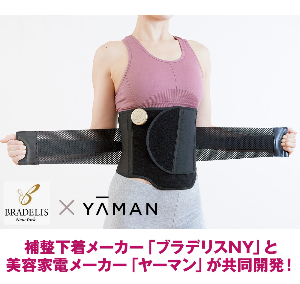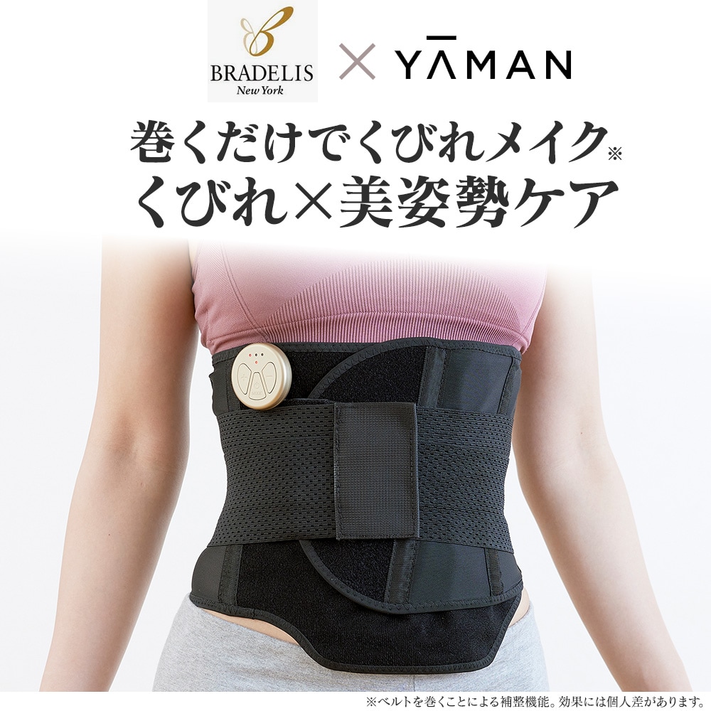 補整下着メーカー「ブラデリスNY」と、美容家電メーカー「ヤーマン」が共同開発!巻くだけハンズフリーで美しいくびれが目指せる! ◆「補整」×「EMS」のダブルパワーで美しいウエストラインへ※1 ベルトでお腹のお肉を物理的にグッと引き締め、さらにEMSで筋肉を刺激することで効率的にくびれを目指します。 ブラデリスNYとヤーマンのそれぞれのこだわりが詰まったベルトです。 ◆こだわりのベルトとバンドで、巻くだけでスタイルアップ!※1 ブラデリスの補整技術を詰め込んだベルトが、ウエストのお肉をしっかりホールド。 加えて6本のボーンが骨盤周りを支え、美姿勢に! さらに二重のくびれバンドで美しいウエストラインを作ります※1。 電極を取り外して、補整ベルトのみでの日常使いも可能です。 ◆低・中・高周波のEMSを搭載 EMSのレベルは6段階あり、シーンに合わせた2つのモードが選択可能。 くびれ筋※2(腹斜筋)に沿うように配置された電極が、お腹全体を広範囲に刺激します。 肌または通電面を十分に湿らせて使うので、替えパッドは不要。 (1) エクサモード:筋肉をトントンたたくような刺激 (2) スタイルモード:筋肉をギューとしぼるような刺激 ◆コードレス・ハンズフリーなので、家事をしながら、くつろぎながらでも使用可能。 (※1) ベルトを巻くことによる補整機能(補整効果には個人差があります) (※2)造語