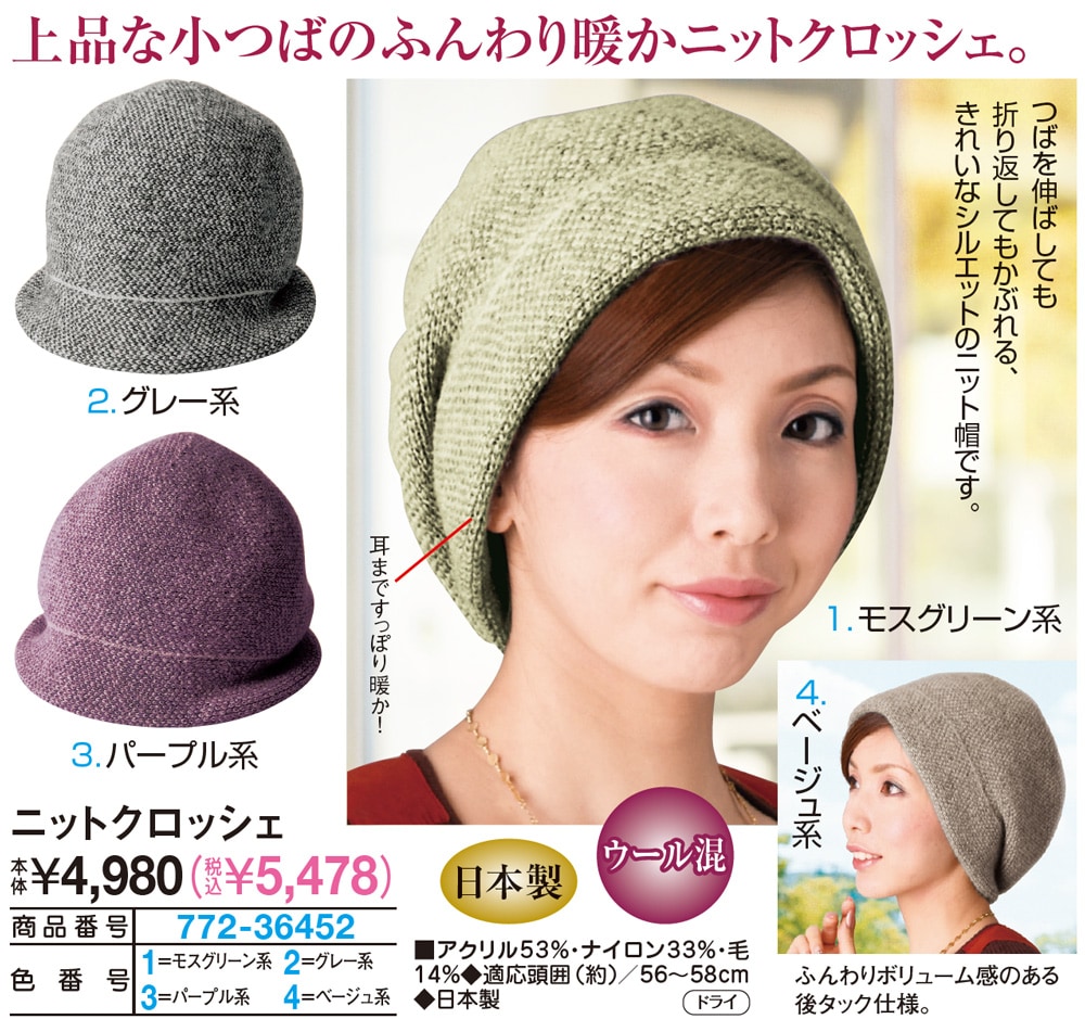 つばを伸ばしても折り返してもかぶれる、きれいなシルエットのニット帽です。