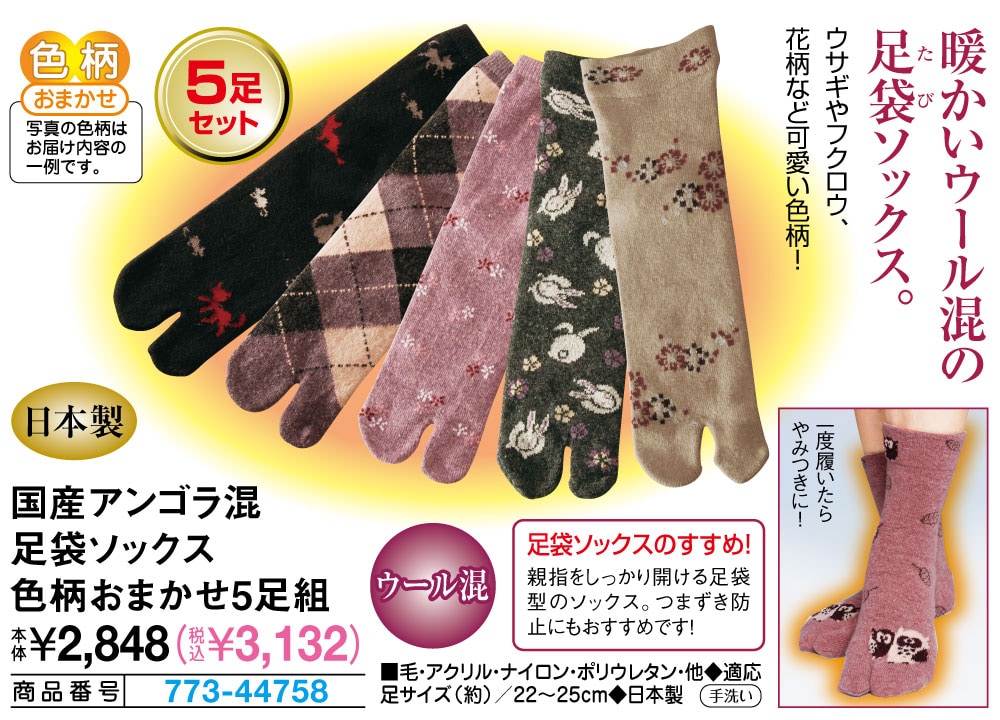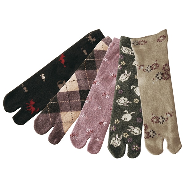 暖かいウール混の足袋ソックス! ◎ウサギやフクロウ、花柄など可愛い色柄! 親指をしっかり開ける足袋型のソックス。つまずき防止にもおすすめです! 一度履いたらやみつきに! ●ウール混