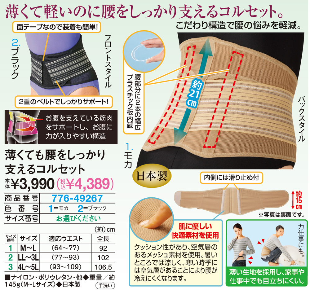 薄くて軽いのに腰をしっかり支えるコルセット!