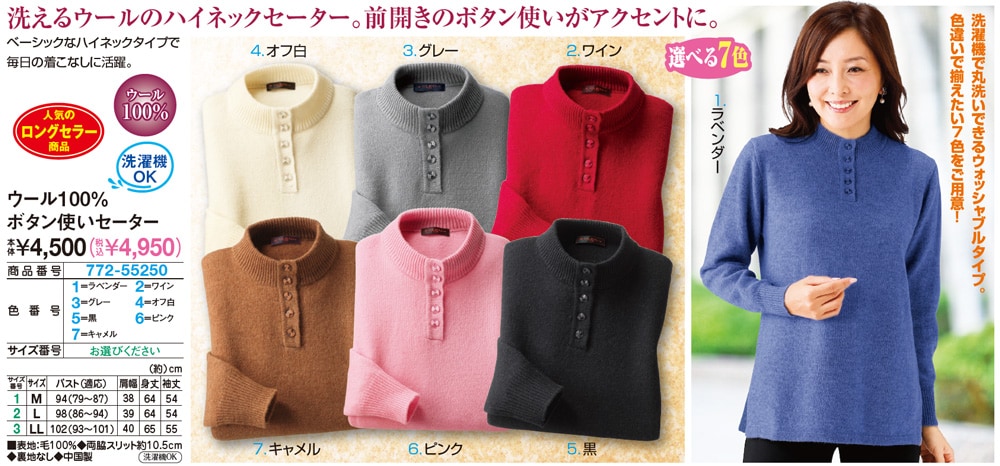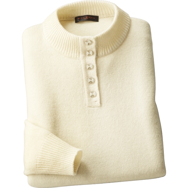 洗えるウールのハイネックセーター!前開きのボタン使いがアクセントに!