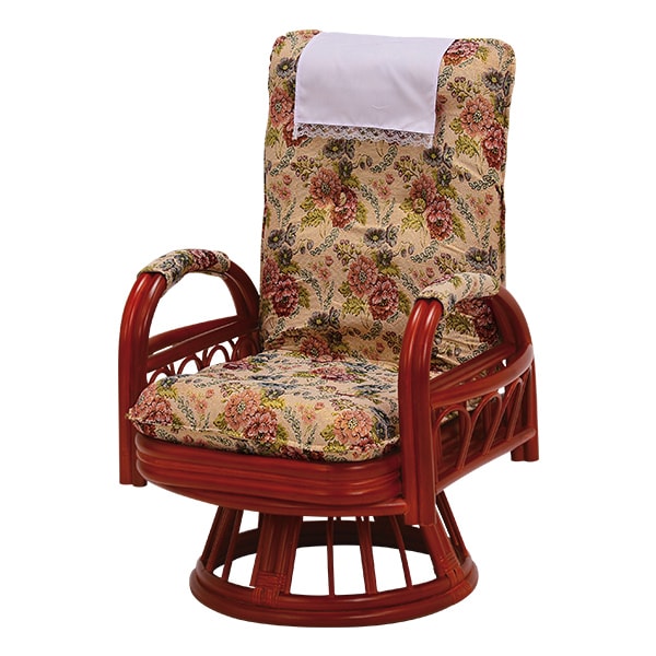 座り心地にこだわったリクライニング式回転座椅子! こだわりの天然素材籐家具 高い背もたれと厚手のクッションが身体をしっかりサポート 金糸を混ぜて織りあげた高級感あふれるジャカード織 肘付だから、立ち座りが楽にできる! 肘、ヘッド部分に取外し可能なカバー付 両側にマガジンラック付 ふっくらとした背部で腰をサポート 背もたれ3段階リクライニング ●ゆったりハイバック ●360度座面回転 ●選べる3サイズ 暮らしに合せて好みの高さが選べます。