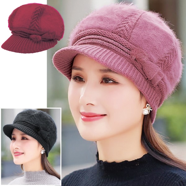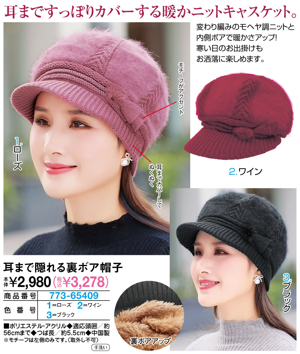 耳まであったかニットキャスケット! 変わり編みのモヘヤ調ニットと内側ボアで暖かさアップ! ●ワンポイントモチーフがお洒落 ●耳までカバーしてぬくぬく