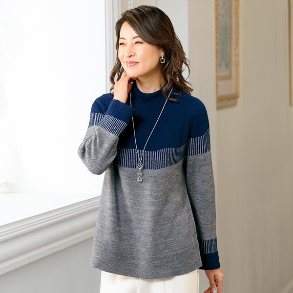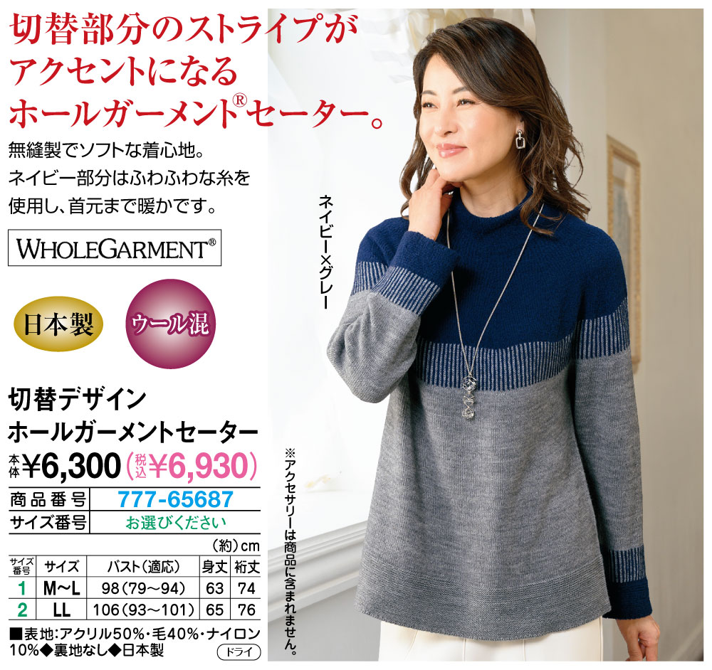切替部分のストライプがアクセントになるホールガーメントセーター!