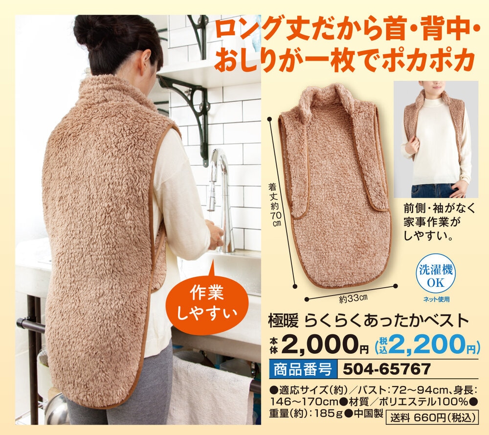 ●前側・袖がなく家事作業がしやすい。