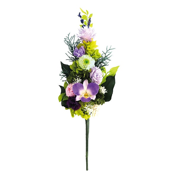 柄とサイズが選べる!生花の質感が続く枯れない仏花! 【プリザーブドフラワーとは】 生花の一番美しい時に特殊加工し、みずみずしい質感を長く保つフラワー。生花ならではの温かみも魅力です。 【蘭】 上品な蘭が気品ある印象に。心が安らぎます。 【千鶴】 心が和む穏やかな色合いで故人を偲びます。 天然の生花を使用した本物の質感。 心安らぐ上品な雰囲気。 【フラワーデザイナー監修】 フラワーデザイナー土橋 美穂先生 水やりも交換も不要で経済的!