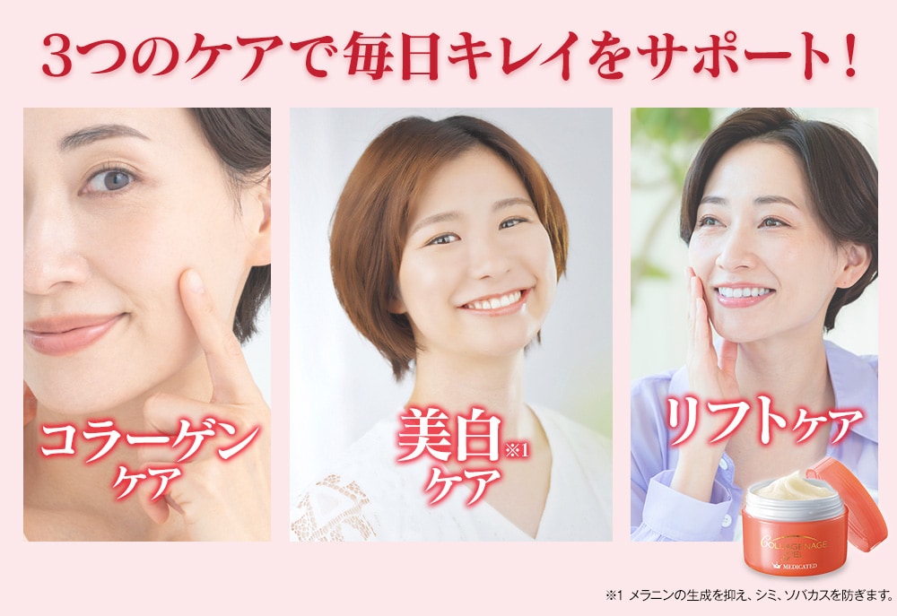 コラーゲンを補給しながら悩みにアプローチ! ・シミ(※1)・くすみ(※8)・ハリ不足・乾燥・肌あれ