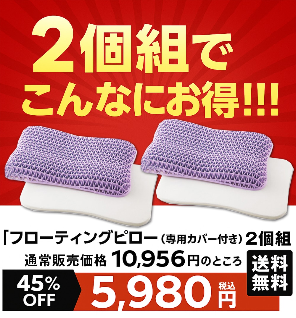 【セット内容】枕本体×2、専用カバー×2 【サイズ(約)】幅55×奥行35×高さ7~8.5cm、1.7kg 【素材】<本体>熱可塑性エラストマー <カバー>側地:ポリエステル100%、詰め物:ポリエステルわた100% ●中国製