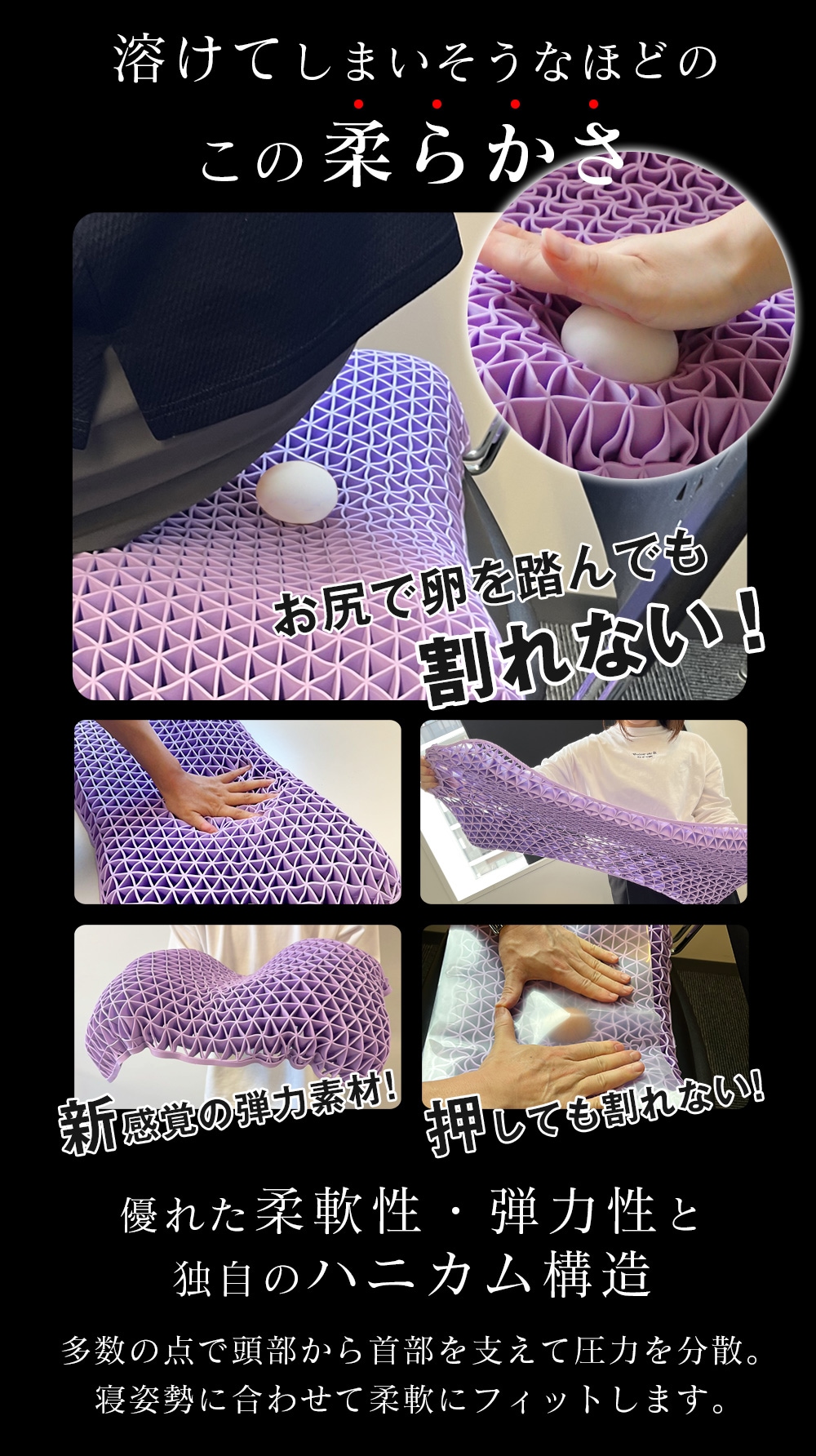 水に浮くような無重力感で体圧を分散する新感覚枕! 優れた柔軟性・弾力性と独自のハニカム構造で、頭・首・肩の負担を軽減します。 【優れた体圧分散性】 体圧を分散し、寝姿勢に合わせて柔軟にフィットします。 ◎洗濯機OK
