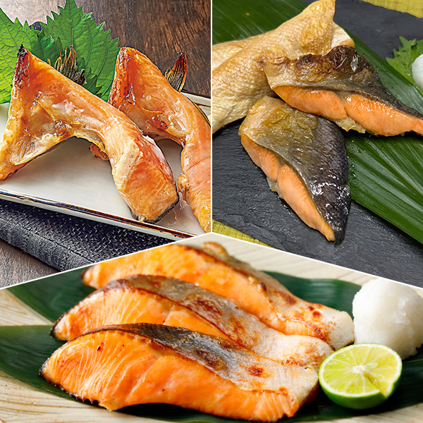 銀鮭を3日ほど冷風で干し、じっくり熟成させて旨みを凝縮させました 鮭の成長に適した三陸リアス式海岸で、えさにこだわり育てているので、生臭さがなく脂の旨味がたっぷり。 今回は切落し(ハラスや尾の部分等)とカマに正規品の切身をセットしました。