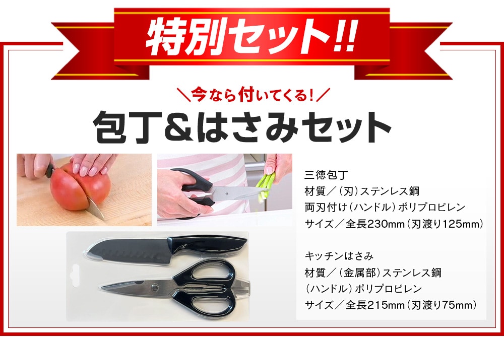 三徳包丁、キッチンはさみが付いた大変お買得なセットです!