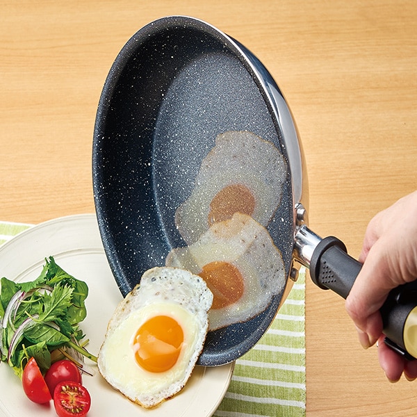 ●ツーミリオンフライパンは深めで通常のIH対応フライパンよる軽く、内面のふっ素加工はダイキンの「200万回摩耗試験合格」を使用。 ●波形の取っ手は、手のひら全体になじみ安定感が抜群です。 ●20cmはちょっとした調理に使いやすいサイズで小さいので洗うのも楽です。26cmは深めに出来ているので炒め物、煮込みも出来る優れものです。 ●外側は美しいミラー仕上げ。汚れがつきにくく落ちやすいです。 対応熱源:IH200V/100V、ガス火、ラジエントヒーター、シーズヒーター、ハロゲンヒーター、エンクロヒーター