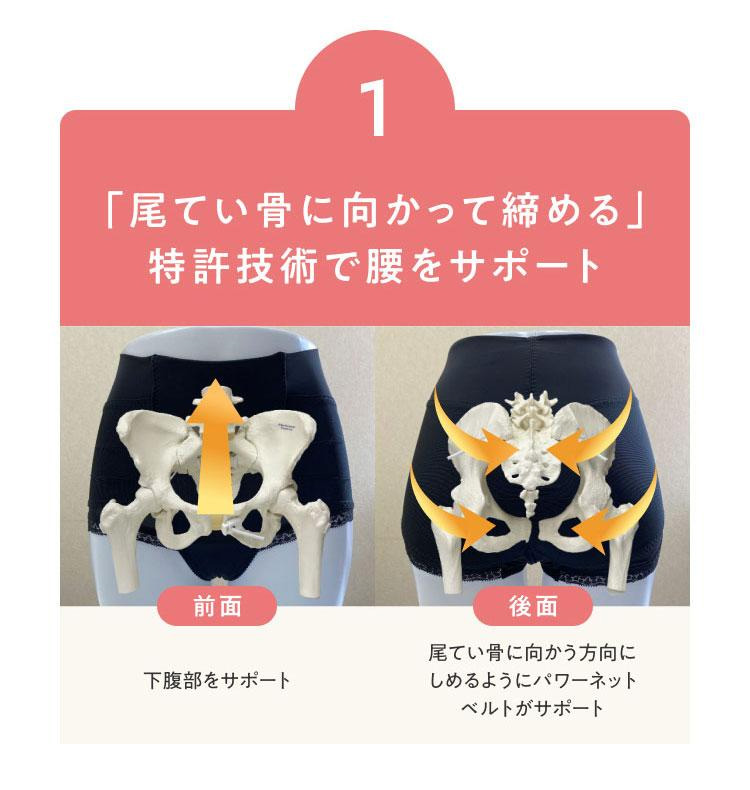 補正下着でもガードルでもない新感覚の骨盤ショーツ! 柔道整復師、鍼灸師、あん摩マッサージ指圧師、姿勢の専門家が全面開発した「整体ショーツNEO+」 力で無理におさえつけずに骨盤のゆがみを整える習慣化にアプローチ やさしい引き締めで体にもやさしい、1枚履きで24時間はける骨盤インナー(※着用時の効果) 「家事育児をしながら」「仕事をしながら」「寝ながら」とながらケアができるショーツは24時間着用可能で無理なくお客様の骨盤をサポートいたします! <こんな方におすすめ> ・反り腰にお悩みの方 ・腰がつらい方 ・産後の骨盤ケアをしたい方 ・立ち仕事や座り仕事が多い方 ・無理なくはけて骨盤補正をしたい方 ・ぽっこりお腹 や お尻をスッキリさせたい方 骨盤が立つことで姿勢が整い、ぽっこりお腹がすっきりします。