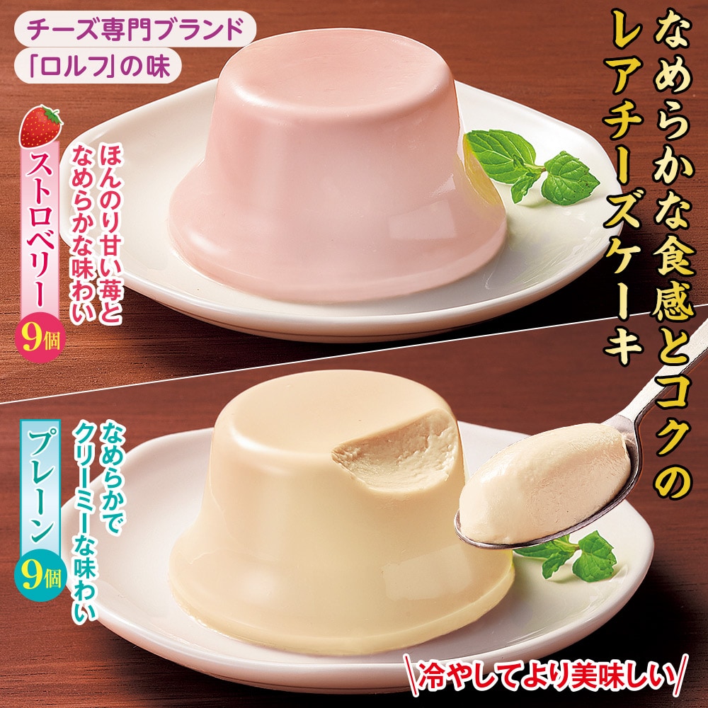 チーズ専門ブランド「ロルフ」の味。 チーズ専門ブランドのレアチーズケーキ2種セットです。 しっかりとしたチーズの風味、味をお楽しみいただけます。 ・ストロベリー ほんのり甘い苺となめらかな味わい。 ・プレーン なめらかでクリーミーな味わい。 冷やしてより美味しい。