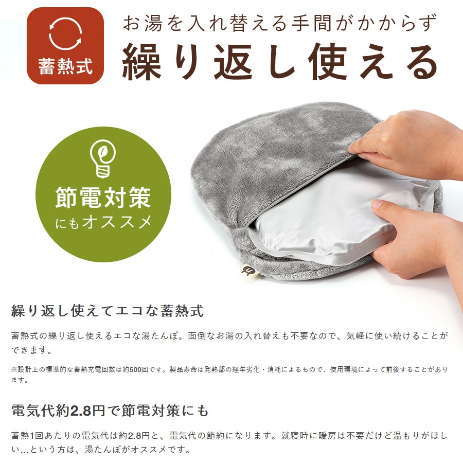 繰り返し使える蓄熱式のエコ湯たんぽ。