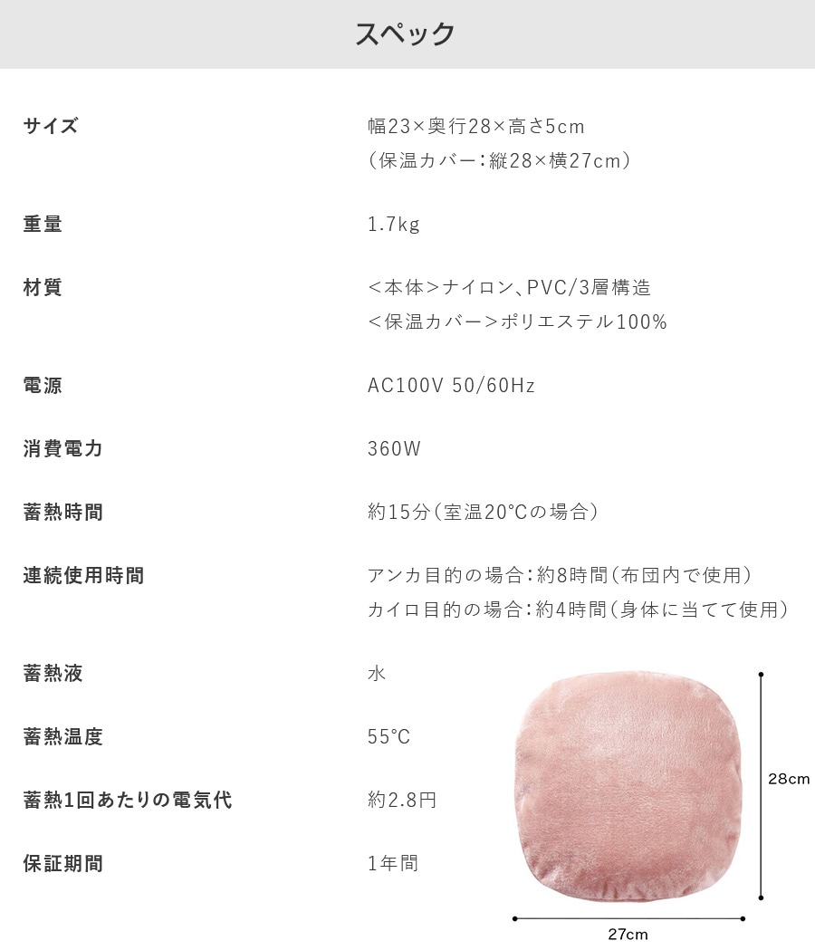 【サイズ(約)】幅23×奥行28×高さ5cm、保温カバー:縦28×横27cm