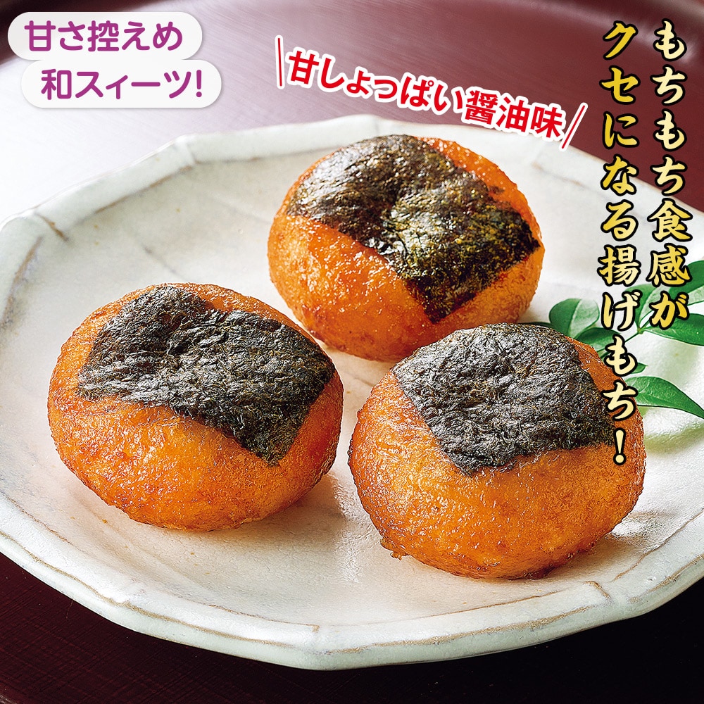 甘さ控えめ和スィーツ! 上新粉をベースに作った揚げもちです。 もちもちとした食感と、甘しょっぱい醤油味がクセになる一品です。 甘しょっぱい醤油味。