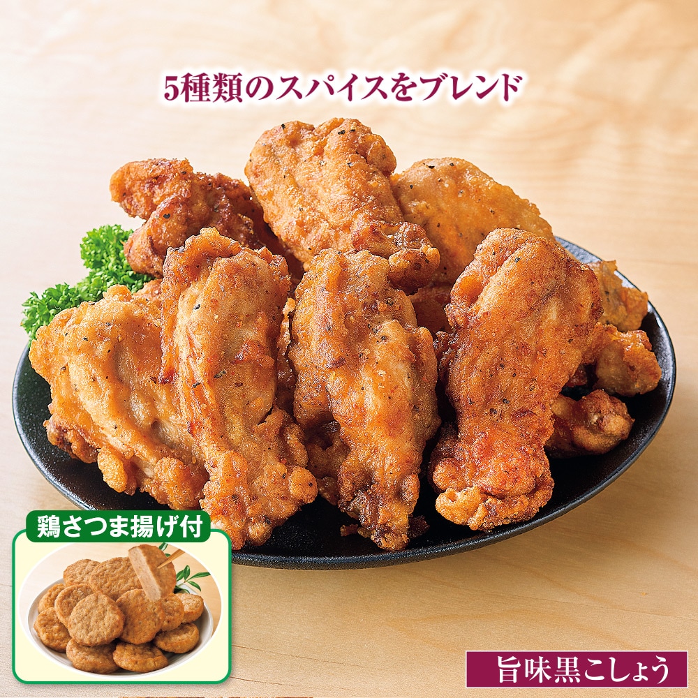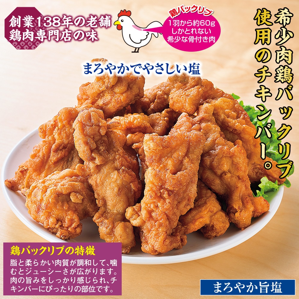 創業138年の老舗鶏肉専門店の味。 チキンバーにぴったりの希少部位をブレンドした衣に漬け込み2度揚げ。 ふっくらジューシー、噛むほどに旨みが広がります。 鶏バックリブの特徴 1羽から約60gしかとれない希少な骨付き肉。 脂と柔らかい肉質が調和して、噛むとジューシーさが広がります。 肉の旨みをしっかり感じられ、チキンバーにぴったりの部位です。 ・まろやか旨塩 まろやかでやさしい塩 ・旨味黒こしょう 5種類のスパイスをブレンド 鶏さつま揚げ付