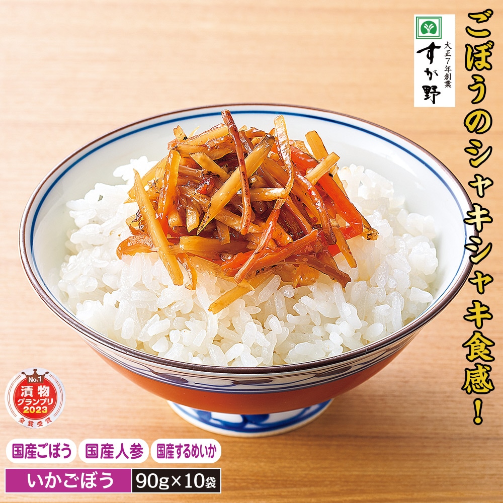 ●セット内容/90g×10袋 ●賞味期限/常温2026年5月15日 ●加工地/日本 ●原材料/ごぼう、にんじん、いか、唐辛子、漬け原材料〔糖類(砂糖・ぶどう糖果糖液糖)、しょうゆ、発酵調味料、醸造酢、食塩〕/調味液(アミノ酸等)、酒精、香辛料抽出物、増粘多糖類、酸化防止剤(ビタミンC)、カラメル色素、(一部に小麦・大豆・いかを含む) ●特定原材料等 /小麦・いか・大豆