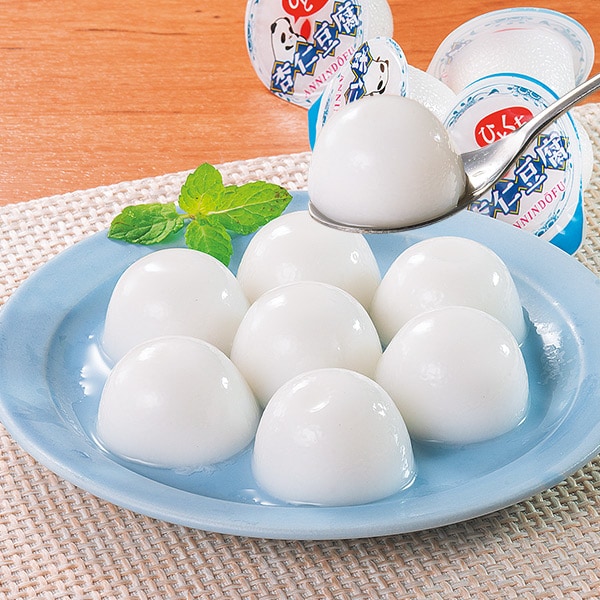 昭和21年創業の老舗メーカーの味! じっくり煮込んで、なめらかな口どけに仕上げました。 杏仁がやさしく香る、食べやすいサイズの杏仁豆腐です。 食べやすい!