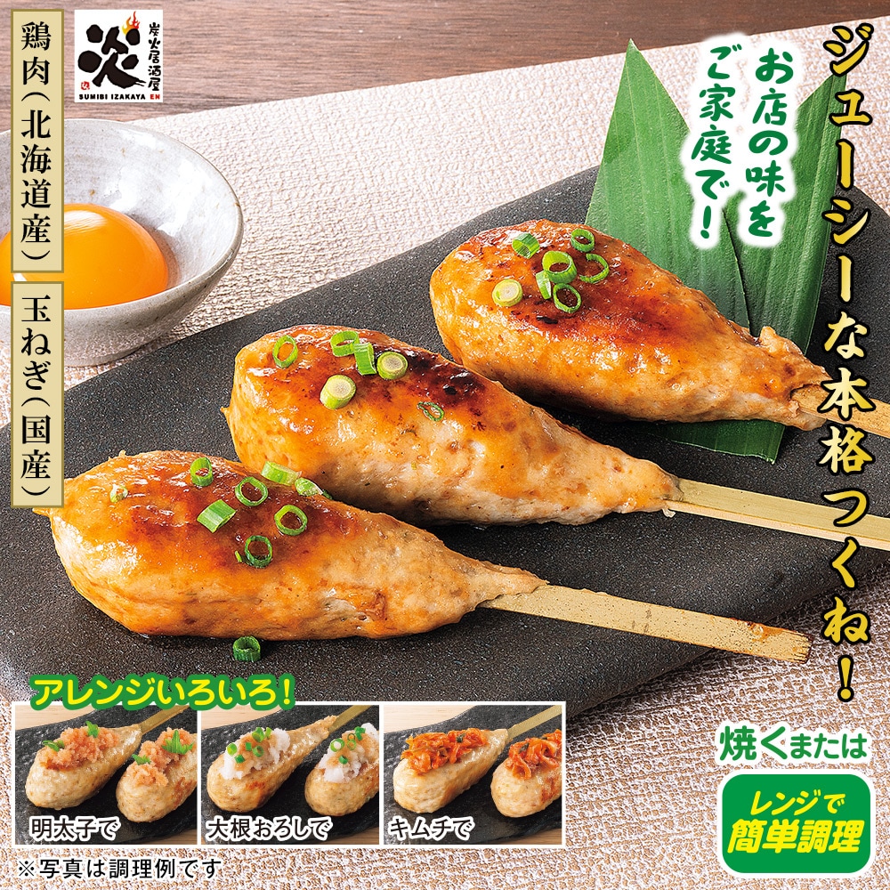 【鶏肉(北海道産)】【玉ねぎ(国産)】 お店の味をご家庭で! 8種のスパイスを練り込んだ手づくりつくね。ひと口目から肉汁が溢れる、ジューシーな味わいです。 アレンジいろいろ! ・明太子で・大根おろしで・キムチで 焼くまたはレンジで簡単調理