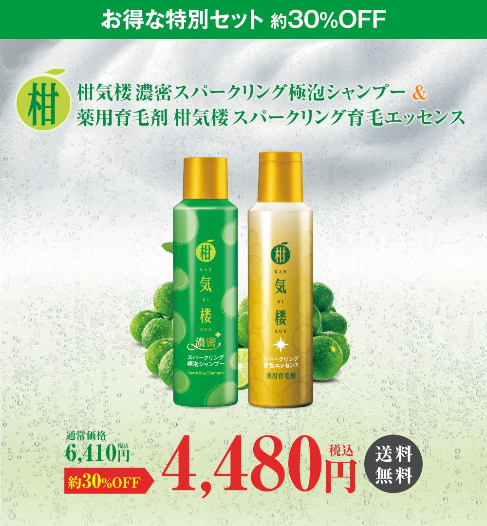 商品の詳細については、各商品のページでご確認ください。 柑気楼濃密スパークリング極泡シャンプー 薬用育毛剤 柑気楼スパークリング育毛エッセンス