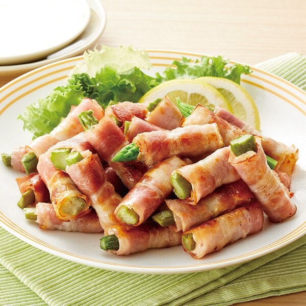 ●セット内容/36個×2パック ●賞味期限/冷凍2026年6月28日 ●加工地/日本 ●原材料/グリーンアスパラ(チリ産)、ベーコン/リン酸塩(Na)、増粘多糖類、調味料(アミノ酸等)、酸化防止剤(V.C)、くん液、発色剤(亜硝酸Na)、コチニール色素 ●特定原材料等 /卵・大豆・豚肉