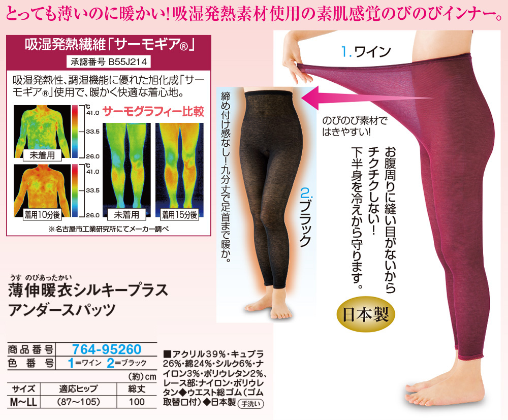 とっても薄いのに暖かい!吸湿発熱素材使用の素肌感覚のびのびインナー!