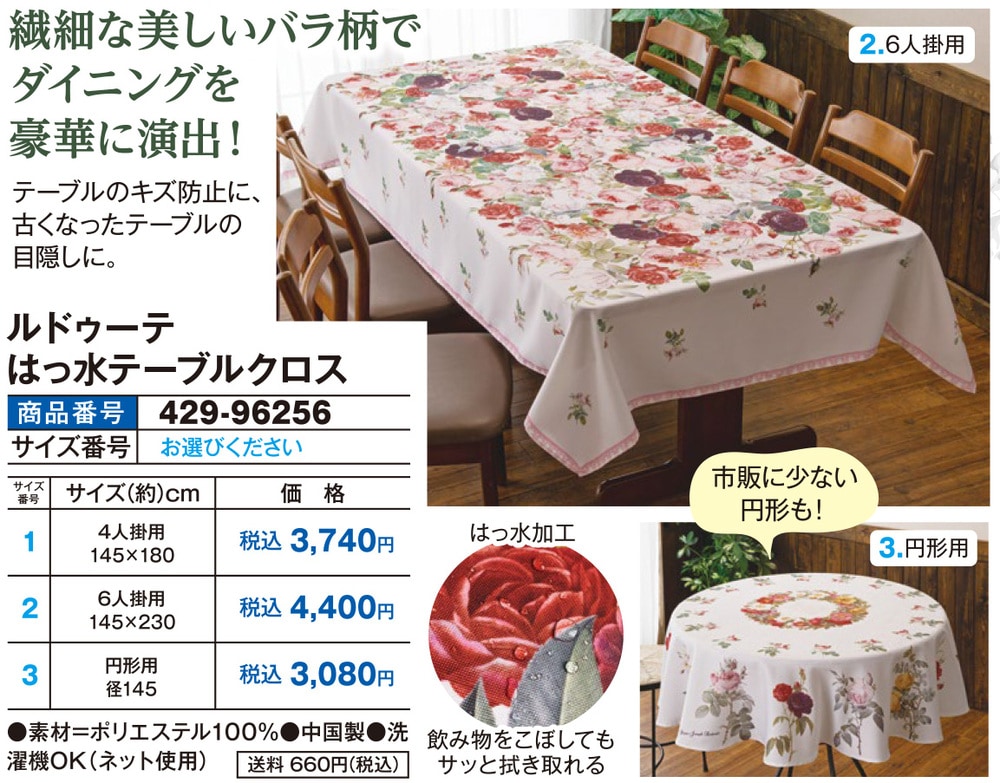 絵羽柄クロスでダイニングを豪華に演出! テーブルのキズ防止、古くなったテーブルの目隠しに。 市販に少ない円形も! 飲み物をこぼしても汚れにくいはっ水加工。 【バラの宮廷画家 ルドゥーテ】 天才植物画家ピエール=ジョセフ・ルドゥーテ。彼の描く芸術性の高い作品は今も人々を魅了し続けています。