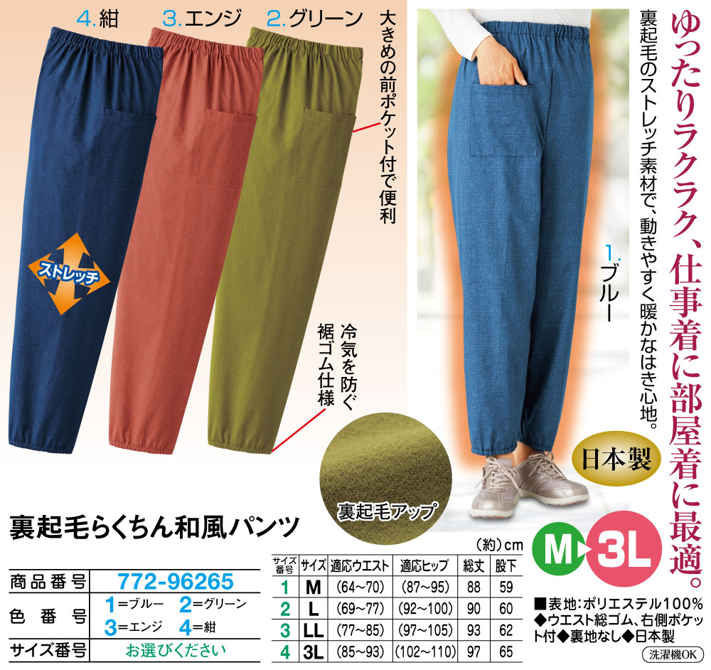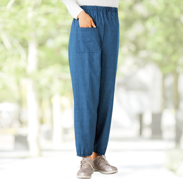 ◆ウエスト総ゴム、右側ポケット付、裾ゴム