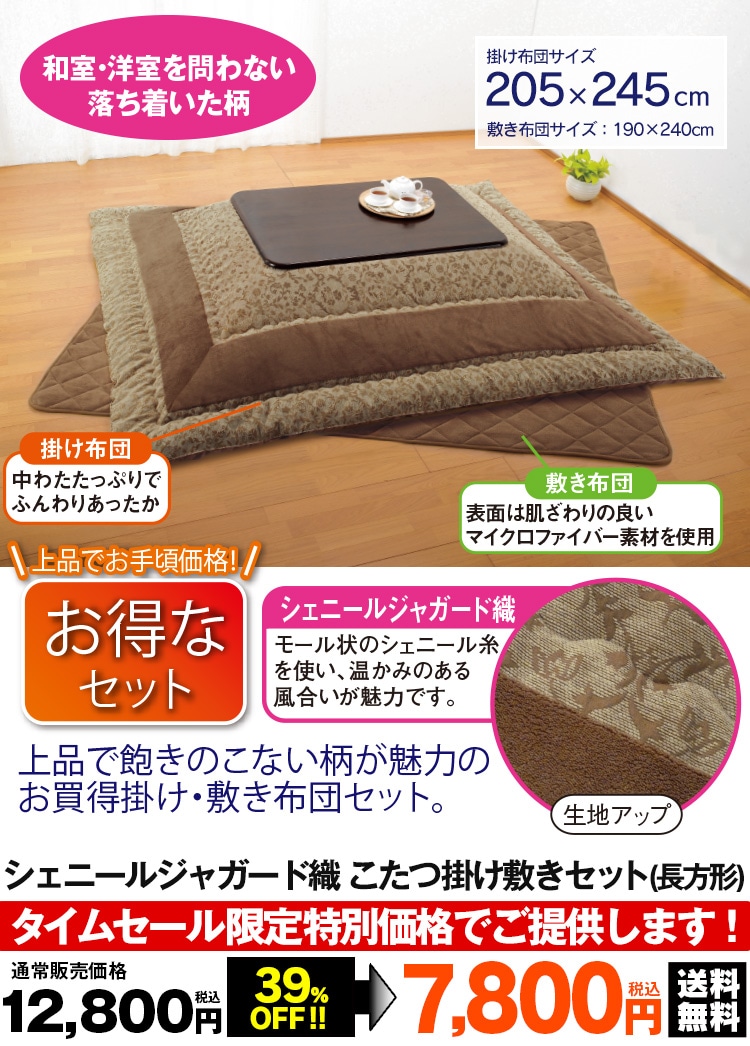 シェニールジャガード織 こたつ掛け敷きセット【タイムセール】<長方形セット>