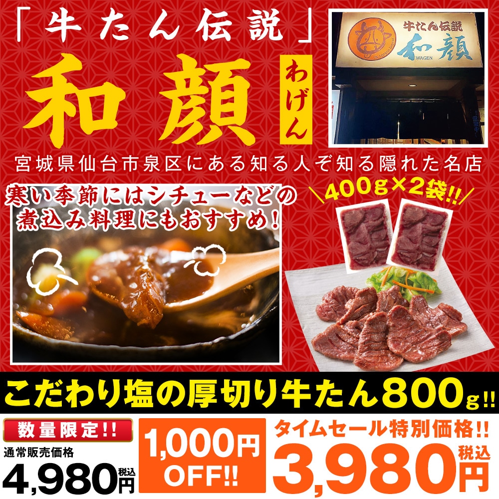 こだわりの塩味! イタリアトスカーナ州の天然岩塩を使用! 牛たんといえば仙台!その仙台で知る人ぞ知る名店「牛たん伝説 和顔(わげん)」の熟成牛たんです。