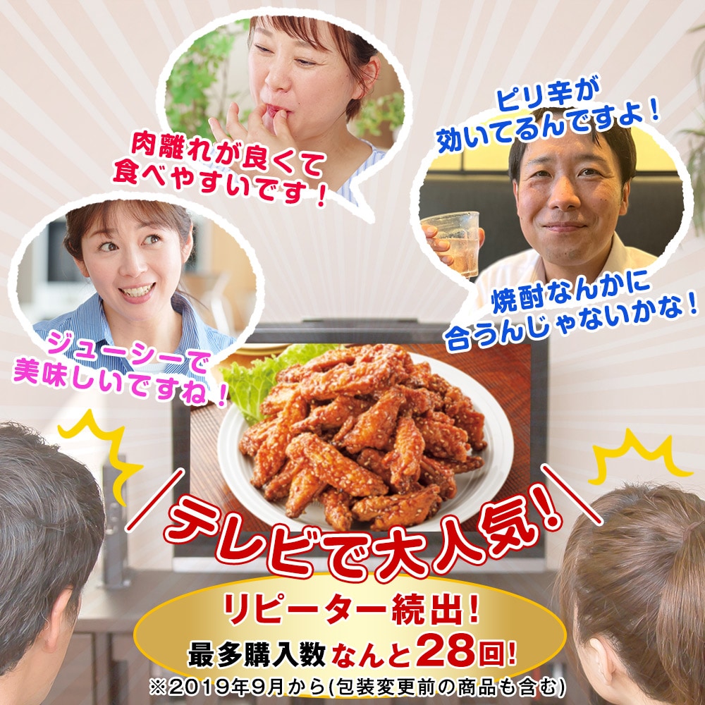【ブラジル産 手羽中】 手羽中の唐揚げに甘辛の特製ピリ辛ダレと炒りごまを絡めました。 手羽中をハーフカットにしているので、食べやすく調理も簡単です。 おつまみに、おかずに、お弁当に大活躍! 骨はするっと外れます。