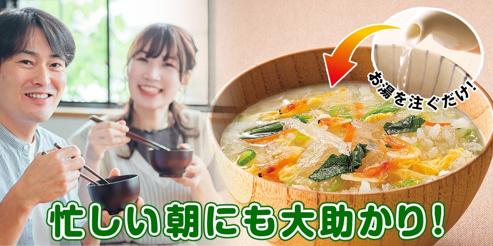 ※必要なお湯の目安量125mL ※個別商品の原材料・栄養成分値につきましては、商品パッケージをご確認の上、お召し上がりください。 ※写真は盛り付け例です。 ※摂取カロリーのコントロールによるダイエットには適度な運動と栄養管理が必要です。