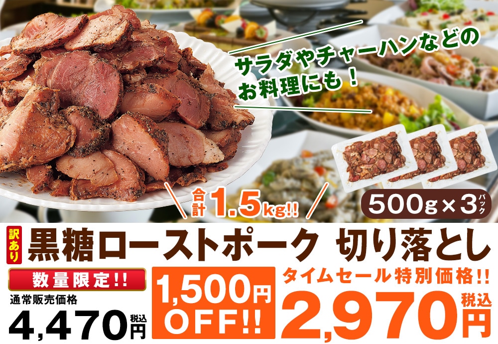 ●セット内容/500g×3パック ●賞味期限/冷凍2026年6月18日 ●加工地/日本 ●原材料/豚肉(国産)、醤油、糖類(加工黒糖、砂糖)、発酵調味料、香辛料、植物性たん白、食塩、たん白加水分解物/甘味料(ソルビトール、甘草)、調味料(アミノ酸等)、リン酸塩(Na)、カラメル色素、ゲル化剤(カラギーナン)、酸化防止剤(V.C)、発色剤(亜硝酸Na) ●特定原材料等 /小麦・牛肉・大豆・豚肉